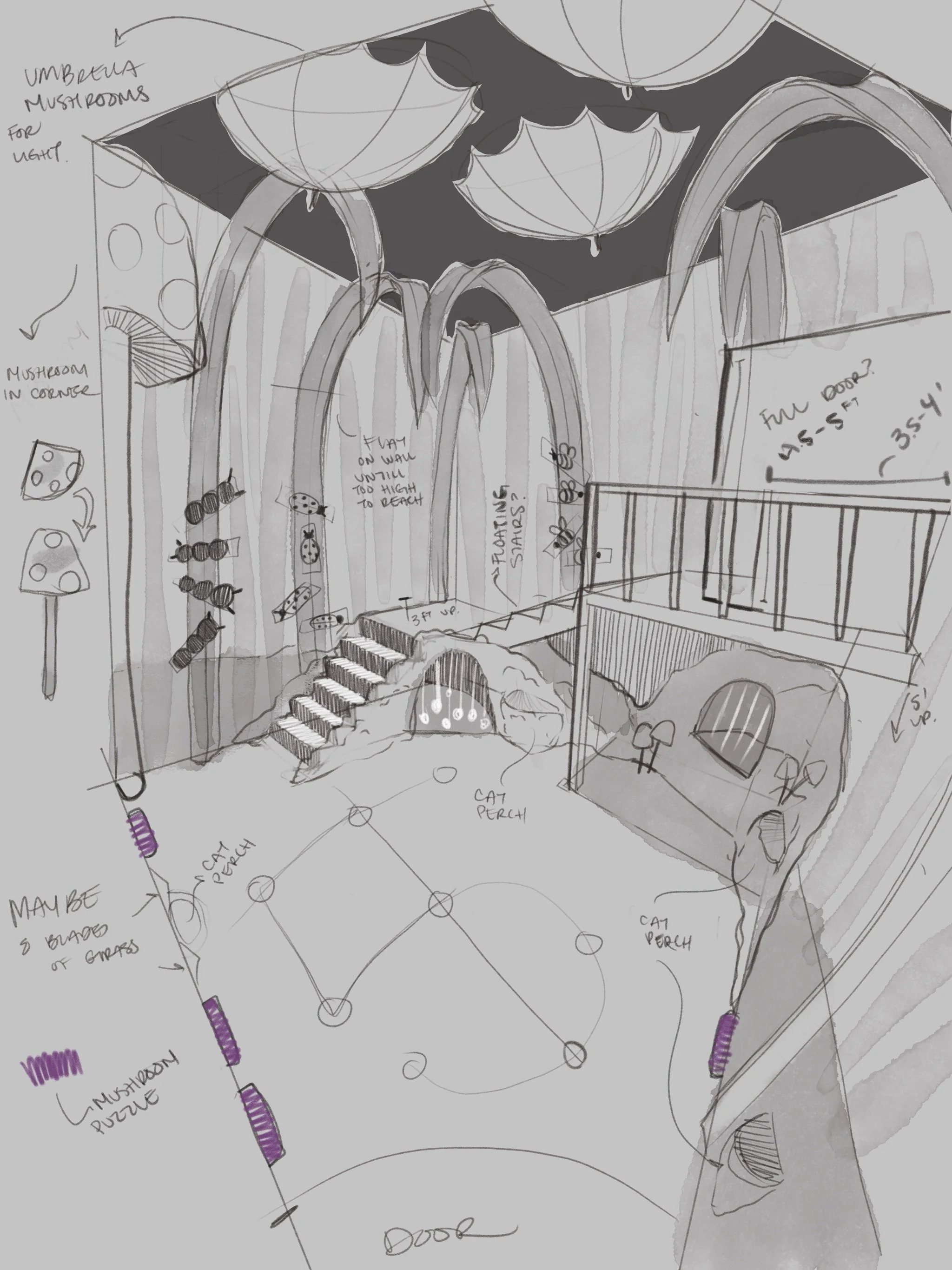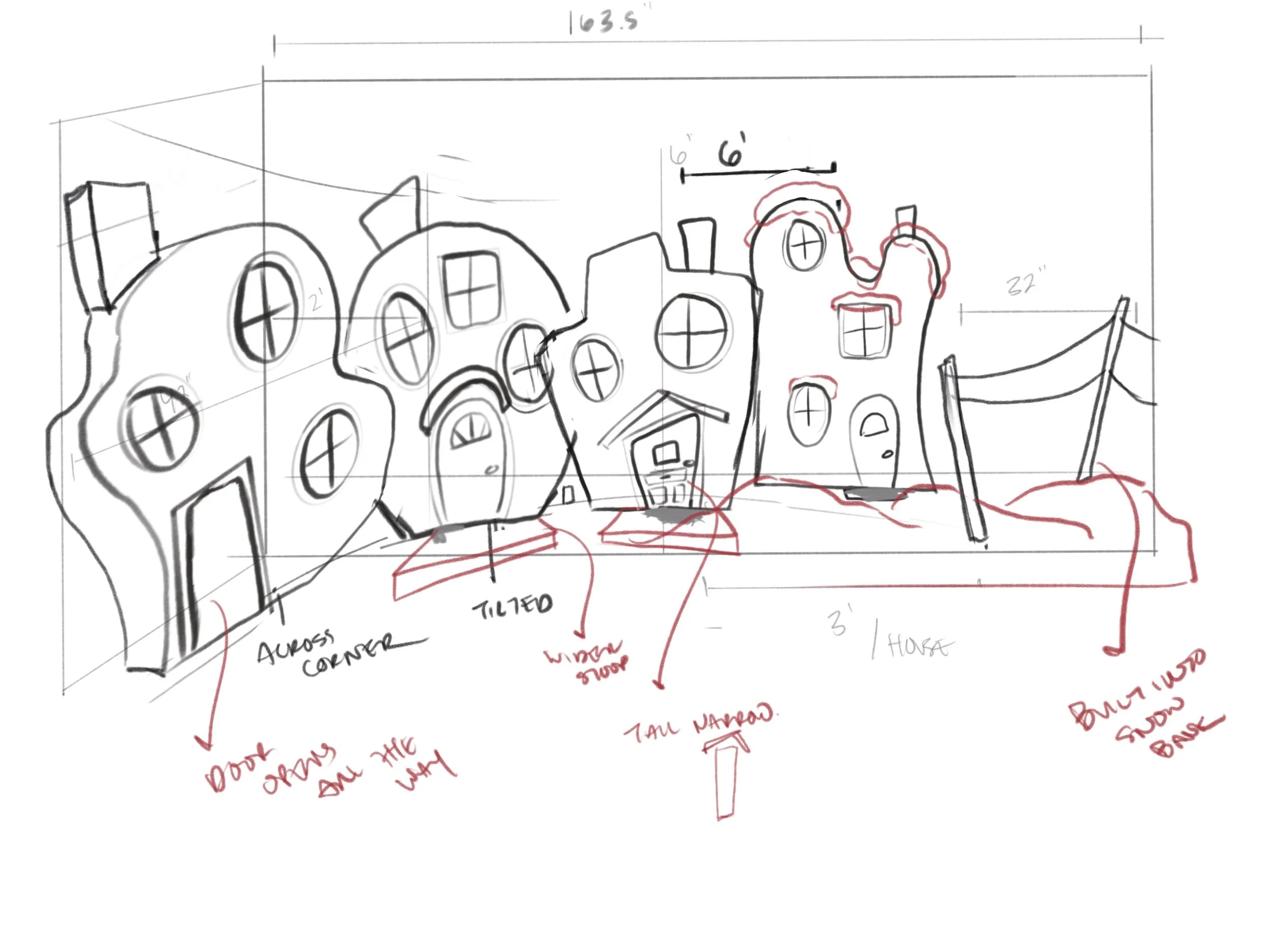 The sketches started rough, with notes and measurements.