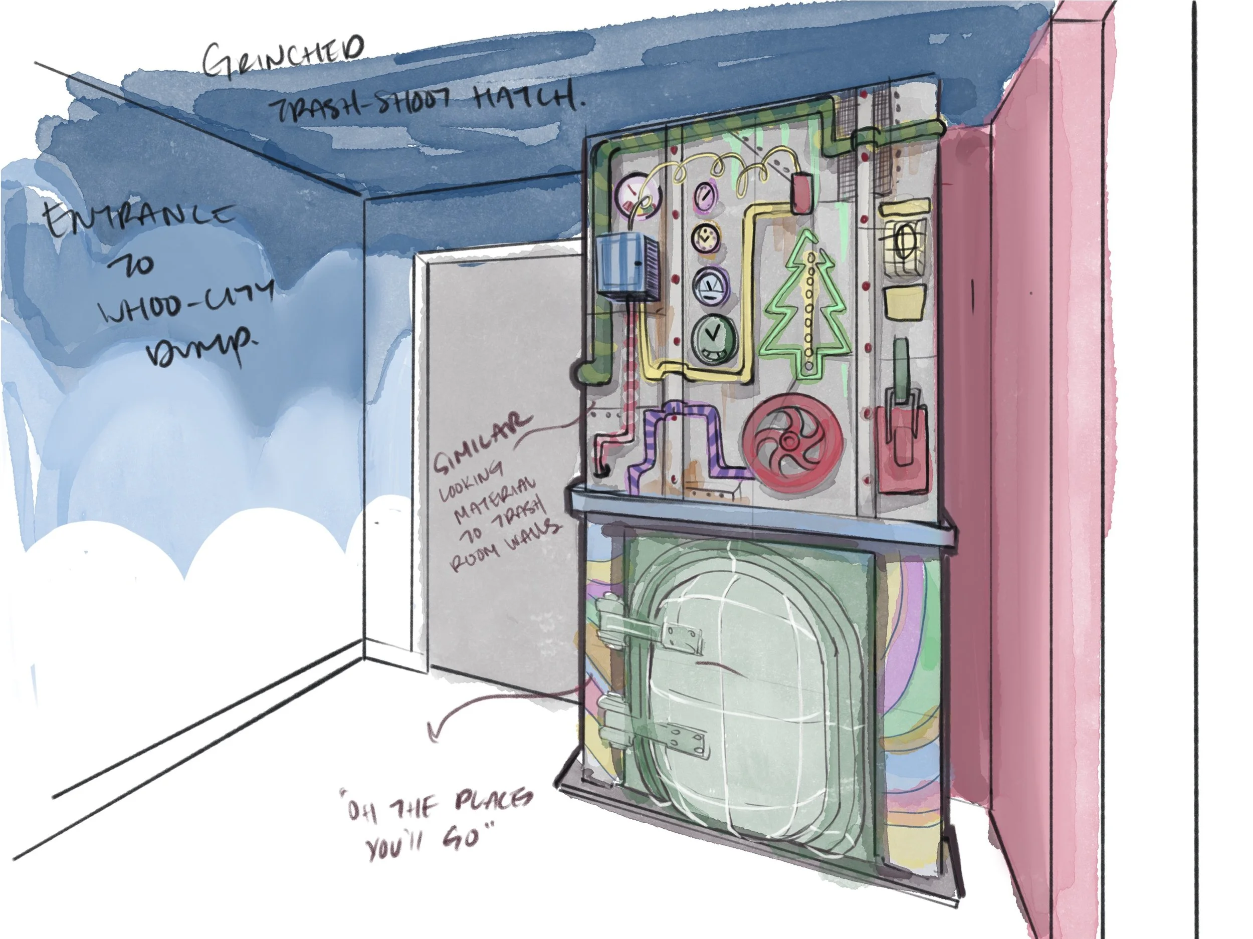 Taking inspiration from Whoville, and the mischievous Grinch,I got right to planning. We had just over 2.5 months before the doors had to be open to the public, and time was ticking.